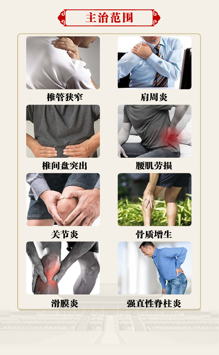 • 椎管狹窄癥、腰椎間盤突出膨出、頸椎病、骨性膝關節(jié)炎、膝關節(jié)創(chuàng)傷性滑膜炎、類風濕性關節(jié)炎、強直性脊柱炎、股骨頭壞死、關節(jié)強直、第三腰椎橫突綜合征、髂腰韌帶損傷、頭頸軀干部位軟組織損...